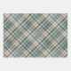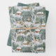 This Christmas woodland wrapping paper set of 3 sheets features coordinating holiday patterns: Cabins in snow-covered forest, plaid, and forest blue with snowflakes.