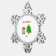 Here you can admire one of Christmas drawings, I call, "Christmas FrankenCheese," FrankenCheese dressed up as Santa, with a decorated Christmas tree, text says, "Merry Christmas." You can now order, "Christmas FrankenCheese," on this snowflake ornament to wish someone a, Merry Christmas."