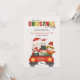 A Christmas party invitation featuring holiday characters, in a red car, with the word "Christmas" as a colourful header. (Vectors by Vecteezy). The card is easy to customize with your wording, font, font colour, paper shape and choice of paper type. Not exactly what you're looking for? All our products can be custom designed to meet your needs at no extra charge. Simply contact us at heartfelthelper@gmail.com. Coordinating products available: Just ask us!"