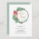 These elegant and festive boho Christmas party invitations feature a stunning watercolor design with eucalyptus leaves, red berries, and lush green foliage, arranged in a trendy asymmetrical wreath. Accented by a single vibrant holiday red flower, this invitation is perfect for adding a touch of seasonal charm. Personalize with your party details—whether it’s a holiday gathering, Yankee swap, white elephant gift exchange, or dinner—beautifully aligned at the bottom and complemented by your names in a sleek green font. The reverse side showcases a solid sage green for a stylish finish. Explore more designs at www.zazzle.com/vginvites.