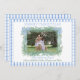 Christmas Garland Blue Bow Ribbon Gingham Holiday Card