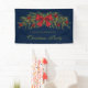 Destei's original illustration of a festive green fir tree garland that is decorated with a big red bow, red Christmas baubles and some faux lights. The background colour is dark blue. There are also two personalizable text areas.