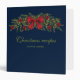 Destei's original illustration of a festive green fir tree garland that is decorated with a big red bow, red Christmas baubles and some faux lights. The background colour is dark blue. There are also personalizable text areas on the front and on the spine.
