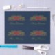 Destei's original illustration of a festive green fir tree garland that is decorated with a big red bow, red Christmas baubles and some faux lights. The background colour is dark blue.
