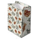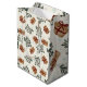 Christmas gift bag with branches green leaves snowflakes white background traditional Christmas colours