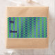 Holiday gift tags - Xmas tree design on green/blue striped background.