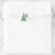 Christmas Holiday peel and stick gift tag shown in a festive Christmas trees print. Text to and from in Red. Great way to wish your gift recipient merry Christmas.