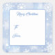 This Christmas gift tag sticker is shown with a festive holiday blue snowflakes print.