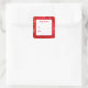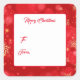 This Christmas gift tag sticker is shown with a festive holiday red and gold snowflakes print.