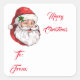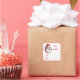 This Christmas gift tag sticker is shown with a festive Santa print.