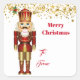 This Christmas gift tag sticker is shown with a festive holiday nutcracker print.