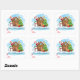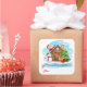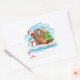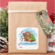 This Christmas gift tag sticker is shown with a festive holiday Santa and the gang print.