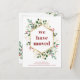 This gorgeous holiday moving announcement features a faux gold geometric frame with matching gold leaves, elegant Christmas greenery, and red holly berries on a modern white background. Trendy, deep red whimsical typography says "We Have Moved." The perfect way to wish your friends a Merry Christmas from your new home!
