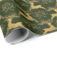 Christmas Gilded Leather Reindeer Green Wrapping Paper