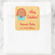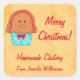 This sticker makes a cute tag label for you to add to jars of jams, jellies, pickles, pies, cakes and more for a Christmas or holiday gift. Customize all the words for your own to describe the contents or gift. You can easily customize the food name and your name to personalize your tag. The cupcake has gingerbread brown icing with stripe and mouth, black eyes and nose. The cupcake paper is turquoise aqua blue with blue stars, a red bow tie, and pink buttons. The background is a yellow gold paint texture on white. This design is original art by Phyllis Dobbs and comes on coordinating products in this store. Fully customizable.