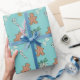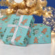 This cute and feminine design features a Christmas pattern of gingerbread men, bows, candy canes, Poinsettias and glitter gold stars on a turquoise / light teal background. Add a touch of whimsy to your holiday season gift gifting with this fun and festive wrapping paper. The gold glitter is not "actual real" glitter but a printed effect.