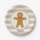 Cool, retro, colourful kid's Christmas Gingerbread Man, brown, red, green design on white stripes, striped pattern with vintage feel. Perfect gift for baby, toddler, kids, children, teens, or adults! Personalized the design by adding a child's name or custom text. Visit our store, Birthday Party House, for more great customizable boy and girl products!