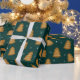 A cozy pattern featuring gingerbread Christmas trees with icing details, scattered stars, and dots, set against a deep green textured background.