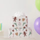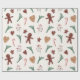 Christmas festive wrapping paper with gingerbread, pine branch and candy