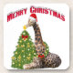 Adorable Christmas Giraffe with his Santa Hat and decorated Christmas tree - he is placing the star on top of the tree