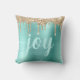 Christmas Glitter Drips Teal Metallic Typography Throw Pillow