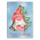 Christmas Gnome with Presents Tree Personalized Christmas Card. This fun watercolor Scandinavian gnome holding a present and sitting in front of a Christmas tree, is a festive way to celebrate the holiday this year. The text can be personalized on the front and you can delete or change the text on the inside of the card. And don't forget to change the signature name!