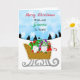Cute hand drawn Christmas Gnomes in a winter sled full of gifts, Merry Christmas Card.