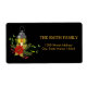 This is Christmas Gold Tree with Black Background return address label design. This design feature is a gold handwritten font with scroll frame accents on a White Snow Glitter background with a rustic textured look. Custom return address text. Personalized address labels for all your mailings.
