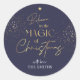 Christmas Gold Glitter Script Name Navy Modern Classic Round Sticker