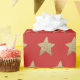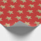 Festive red wrapping paper with sparkly faux glitter stars pattern design.