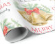 Elegant watercolor three golden bells and a big red bow with stylized green foliage Merry Christmas repeat patterned wrapping paper. Personalize with your own family name or message. Original hand watercolor painting and design by Sarah Trett for www.mylittleedenweddings.com