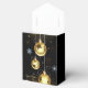 Christmas Golden Ornaments Shiny Stars Black Favour Boxes. Unique, beautiful, stylish design. Easy to be personalized. Font style, size and colours can be changed. Matching items available.