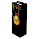 Beautiful gift bag with a big golden Christmas ball and golden polka dots on black background. Happy holidays text can be personalized. Ideal for wine and other gifts.