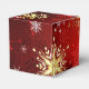 Red Christmas background with gold and white jewellery snowflakes. Golden snowflakes.