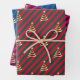 Christmas Golden Tree Multicolor Stripe Wrapping Paper Sheet