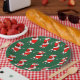 Golf themed Christmas holiday party plates featuring Santa golfer golfing pattern for golf lovers.