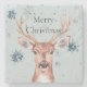 Christmas Green Blue Snowflakes Deer Stone Coaster