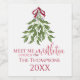 Merry Mistletoe with white berries tied up in a red ribbon nestled atop a doorway awaiting those to stand underneath. A lovely and simple design that depicts a simple and classic Christmas element. A wonderful design for any holiday occasion. This design features Christmas holiday merry mistletoe, botanical greenery leaves foliage, elegant watercolor red ribbon, simple minimalist calligraphy font, a winter branches twigs berries, a holiday Christmas celebration celebrate, modern classic simple calligraphy, a custom customizable customize family, artwork by Laura Lacina, holiday Christmas sparkling wine sticker gift