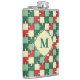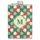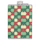 Christmas Green Red Geometric Puzzle Piece Pattern Hip Flask