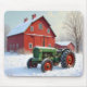 Christmas Green Tractor By a Red Barn Mouse Pad