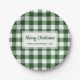 Classic green and white buffalo check paper plates feature a white rectangle in the centre which reads "Merry Christmas" in a dark green script font with your name and the year below it in a simple contrasting font. Perfect for a holiday party and for gifts of cookies. Personalize it with your name and text in the sidebar.