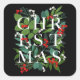 CHRISTMAS Greenery Berries Holiday Black Square Sticker