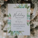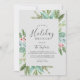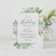 This Christmas greenery holiday brunch grey invitation card is perfect for a simple holiday event. The winter holiday design features soft sage green watercolor eucalyptus and modern botanicals with sprigs of classic red holly berries.