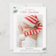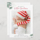 Simple holiday birth announcement card with a baby photo and winter greenery