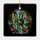 The word Christmas among winter leaves and berries are featured on these Christmas tree ornaments personalized greeting with your family name or business name. MATCHING items in our collection.