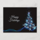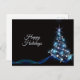 Christmas Greeting Blue Shiny Tree Black Elegant Postcard. Unique, beautiful, stylish design. Easy to be personalized. Font style, size and colours can be changed. Matching items are available.