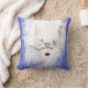 Christmas Greeting Deer Blue Snowflakes Throw Pillow