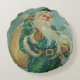 Christmas Greetings-Retro Santa Claus Postcard Round Pillow