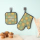 Christmas Happy Holidays Green Gold Plaid Oven Mitt & Pot Holder Set