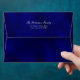 These customizable envelopes have the printed return address on the front flap, with vintage sheet music and a festive decorated harp on the back, with a faux navy blue metallic background. See the collection for matching Christmas cards and accessories.